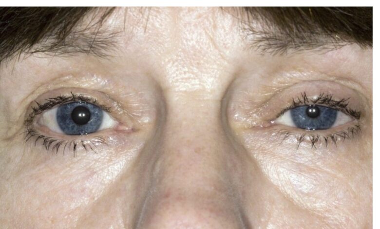 1. Right eye findings—the patient has Horner’s syndrome. This is the the triad of ptosis (drooping of the upper eyelid), miosis (constriction of the pupil), and decreased sweating on the affected (right side) of the face. Sometimes the affected eye will sink into the bony orbit (enophthalmos). Horner’s Syndrome is caused by disruption of the sympathetic nerve fibers that travel along the carotid artery to the eye and control pupillary dilation and constriction and blinking.